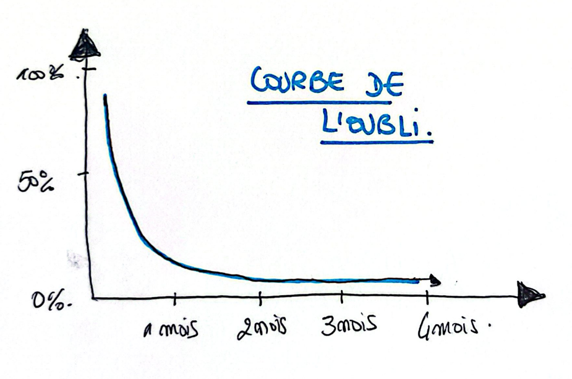 La courbe d’Ebbinghaus nous rappelle radicalement que l’oubli est rapide et presque naturel. Sans pratique, ce que l’on vient d’apprendre peut s’effacer très rapidement de notre cerveau.